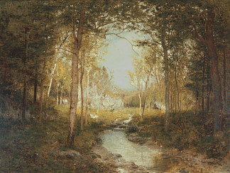 Alexander Wyant出生于俄亥俄州华盛顿港。他在俄亥俄州辛辛那提时开始在俄亥俄河边画画。乔治·因尼斯风格的风景画家,后来在纽约市遇到了他。他的早期画作紧随哈德逊河画派的传统,而后来的画作 - 注入了低调的色彩,大气的特征和诗意的诠释 - 是调性主义的代表.