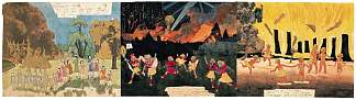 他作品的视觉主题范围从爱德华时代室内田园诗般的场景和由儿童和奇妙生物居住的宁静花卉景观,到描绘幼儿遭受酷刑和屠杀的可怕恐怖和屠杀场景。他的大部分作品都是带有拼贴元素的混合媒体。Darger的作品已成为局外人艺术最著名的例子之一.