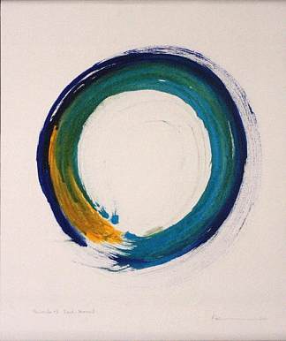 田桥和明的创新作品融合了传统禅宗艺术和20世纪抒情抽象的影响,特别是包括一笔书法和彩色圆圈(通常刷得非常松散)。