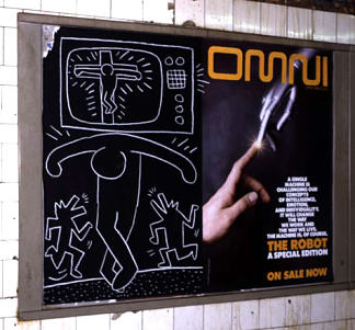 1980年代纽约的艺术倾向为哈林提供了一个充满活力的框架来阐述他自己的艺术实践。他于1982年开始创作街头艺术作品,其中包括黑纸上的白色粉笔画,用于覆盖纽约地铁站的旧广告和其他表面。他还积极参与他那个时代的政治情景。他从1980年开始的剪裁,假报纸头条的拼贴画,以及他的地铁图纸(1982年)评论并公然攻击罗纳德·里根的政策和天主教会。哈林的艺术视野也受到让·杜布菲的艺术理论和罗伯特·亨利的宣言《艺术精神》(1923)的影响,该宣言倡导创作自由和自我表达的权利是艺术家作品的主要驱动力。这些想法也体现在哈林毕生致力于创造一种真正的公共艺术中,这种艺术是他自己感受的直接和无中介的表达,很容易被观众理解.