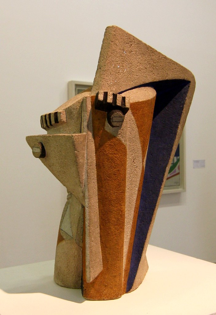 “这个雕刻的石头头像结束了劳伦斯的彩色木材和金属立体主义建筑系列,宣布了他的雕塑作品的转折点,并确认了他需要回归体积密度。在彩色的突出下,相交的几何平面提供了几个视角,表明了面部的逐渐转变。