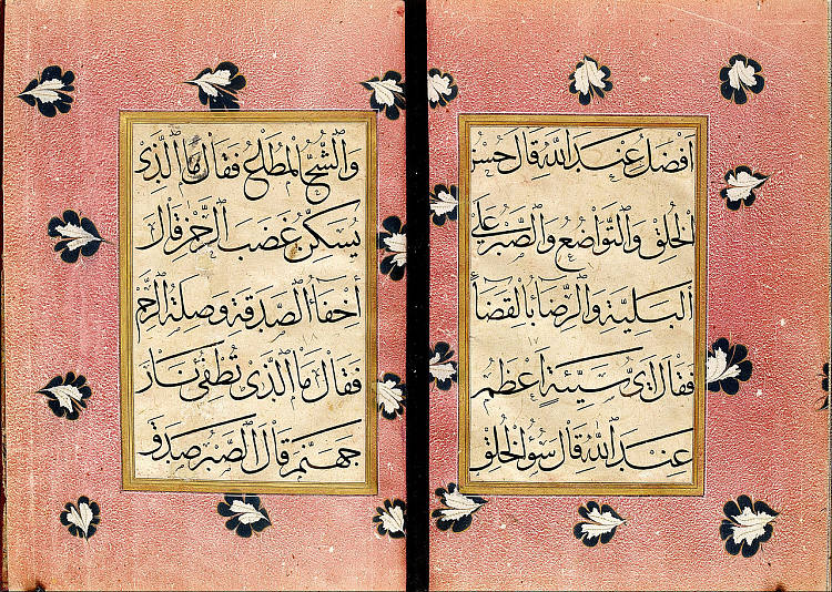 祷告手册 Prayer manual (1669),哈菲兹奥斯曼 哈菲兹奥斯曼 书法、奥斯曼帝国时期 作品名称:祷告手册 Prayer manual 创作者:哈菲兹奥斯曼 Hafiz Osman 创作年代:1669 风格:奥斯曼帝国时期 类型:书法 版权信息:Public domain 感谢您对艺术百科网站的运营支持,您的赞助属于自愿行为,用于支付本站服务器资源和运营维护成本。 高清原图下载地址: 下载地址:https://oss.pic699.com/hafiz-osman/prayer-manual-1669.jpg 无水印原图下载当前图片下载价格1 元请先登录哈菲兹奥斯曼 作品合集(共6张)下载价格2.9 元请先登录客服QQ:4216683 0 0 字体文本笔迹