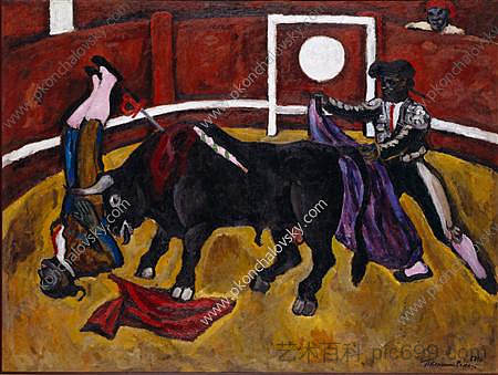 斗牛 Bullfight (1910),孔科洛夫茨基 孔科洛夫茨基 表现主义、风俗画 作品名称:斗牛 Bullfight 创作者:孔科洛夫茨基 Pyotr Konchalovsky 创作年代:1910 风格:表现主义 类型:风俗画 图片尺寸:133.5 x 176 cm 版权信息:Public domain US 感谢您对艺术百科网站的运营支持,您的赞助属于自愿行为,用于支付本站服务器资源和运营维护成本。 高清原图下载地址: 下载地址:https://oss.pic699.com/pyotr-konchalovsky/bullfight-1910.jpg 无水印原图下载当前图片下载价格1 元请先登录孔科洛夫茨基 作品合集(共455张)下载价格49 元请先登录客服QQ:4216683 0 0 传统公共活动公牛动物运动斗牛斗牛士牛生卒年罗德奥运动场地