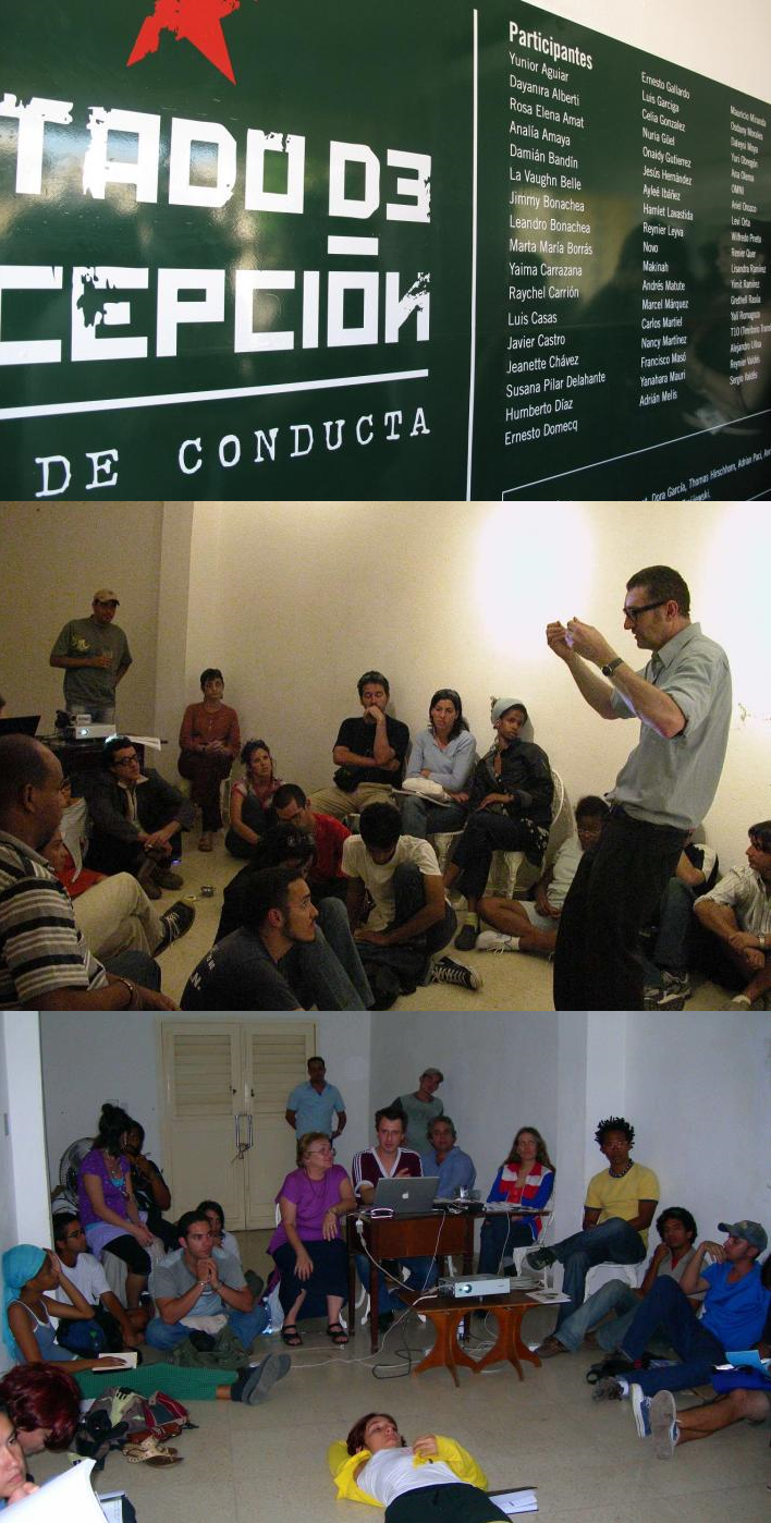 行为艺术学校(Cátedra Arte de Conducta)由Tania Bruguera于1998年构思,并于2002-2009年在哈瓦那实施,是一个公共艺术框架,制度框架和长期干预,“旨在为当代古巴社会的艺术研究系统创造一个替代培训的空间”。它的重点是“对社会政治行为的讨论和分析,以及对艺术的理解,即通过激活对其环境的公民行动来改变意识形态的工具”,旨在通过艺术改变社会的某些空间,艺术不被理解为象征性的表现,而是连续的跨学科活动。