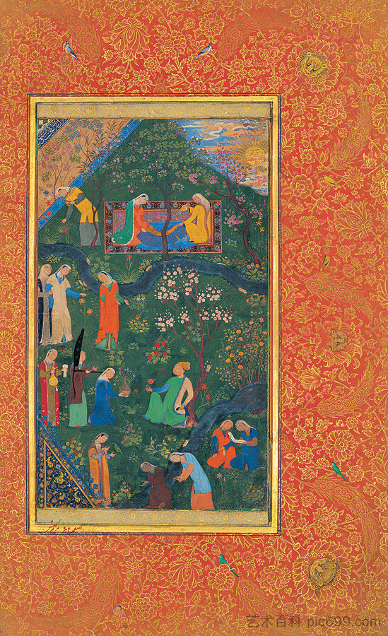 苏丹侯赛因·米尔扎在海滨长廊(右部分) Sultan Hossein Mirza in Promenade (right part),白扎德 白扎德 帖木儿时期、细密画 作品名称:苏丹侯赛因·米尔扎在海滨长廊(右部分) Sultan Hossein Mirza in Promenade (right part) 创作者:白扎德 Kamal ud-Din Behzad 风格:帖木儿时期 类型:细密画 版权信息:Public domain 感谢您对艺术百科网站的运营支持,您的赞助属于自愿行为,用于支付本站服务器资源和运营维护成本。 高清原图下载地址: 下载地址:https://oss.pic699.com/kamal-ud-din-behzad/sultan-hossein-mirza-in-promenade-right-part.jpg 无水印原图下载当前图片下载价格1 元请先登录白扎德 作品合集(共23张)下载价格4.9 元请先登录客服QQ:4216683 0 0