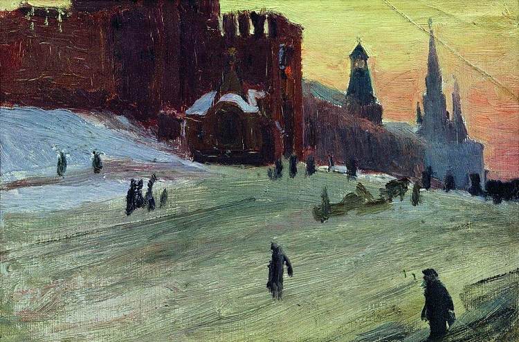《莫斯科。红场》(Moscow. Red Square)是克斯托依列夫于1916年创作的一幅油画,属于现实主义风格。这幅画展现了一幅热闹而富有魅力的红场景象,画面中充满了各种各样的人物和细节,反映了当时俄罗斯社会的多样性和活力。我们可以看到一些穿着传统服装的农民、商人、乞丐、士兵、教士、贵族等,他们或行或坐,或谈或笑,或购物或游览,形成了一幅生动的人物群像。红场上的建筑物也各具特色,有圣瓦西里大教堂、国家历史博物馆、列宁墓等,它们与人物相互映衬,构成了一幅富有节奏感和对比效果的画面。