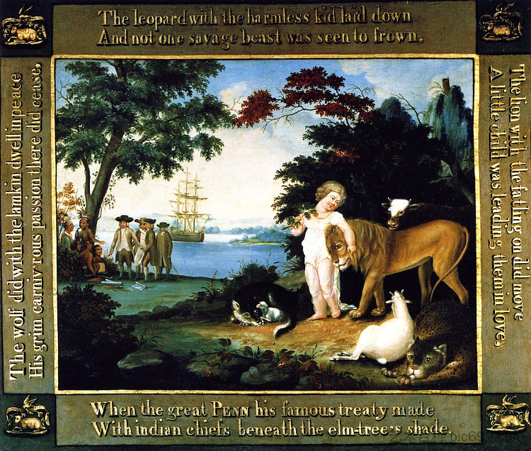 和平王国 Peaceable Kingdom (1829),爱德华·希克斯 爱德华·希克斯 宗教绘画、素人艺术(原始主义) 作品名称:和平王国 Peaceable Kingdom 创作者:爱德华·希克斯 Edward Hicks 创作年代:1829 风格:素人艺术(原始主义) 类型:宗教绘画 版权信息:Public domain 感谢您对艺术百科网站的运营支持,您的赞助属于自愿行为,用于支付本站服务器资源和运营维护成本。 高清原图下载地址: 下载地址:https://oss.pic699.com/edward-hicks/peaceable-kingdom-1829-1.jpg 无水印原图下载当前图片下载价格1 元请先登录爱德华·希克斯 作品合集(共41张)下载价格6.9 元请先登录客服QQ:4216683 0 0 生物