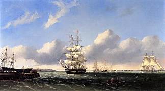 海与船 Sea with ships (c.1826),卡斯珀尔·大卫·弗里德里希