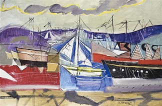 翁弗勒尔, 法国, 海港入口 Honfleur, France, Entrance to the Harbour (1939),爱德华·沃兹沃思
