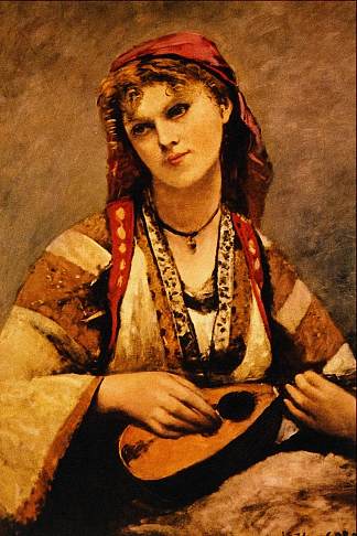 克里斯汀·尼尔森(Christine Nilson),或《波西米亚人与曼陀林》(The Bohemian with a Mandolin) Christine Nilson, or The Bohemian with a Mandolin (1874),卡米耶·柯罗
