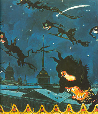 集市上的夜晚。片段。窗帘草图 Night at the fairground. Fragment. A sketch for the curtain (1911),亚历山大·班耐瓦