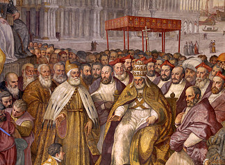 腓特烈·巴巴罗萨在签署威尼斯条约期间向教皇亚历山大三世提交的文件(细节) Submission of Frederick Barbarossa before Pope Alexander III during the signing of the Treaty of Venice (detail) (c.1563),弗朗切斯科·德·罗西(弗朗切斯科·萨尔维亚蒂),“狙击手”