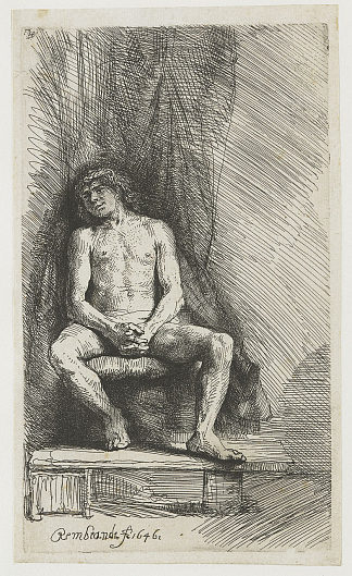 坐在帘子前的裸体男子 Nude man seated before a curtain (1646),伦勃朗