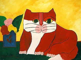红猫和花瓶与鲜花 Red Cat and Vase With Flowers,阿尔代米尔·马丁斯